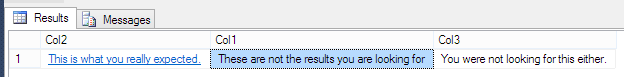 Now, using one of a little known feature of SSMS we can click and drag on the header of the Col2 column and drag it over to be the first column. It still shows the correct result data.
